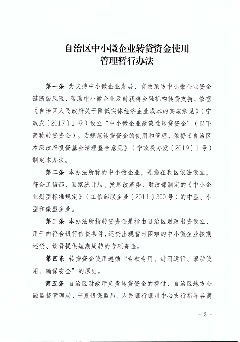 自治區(qū)中小微企業(yè)轉貸資金使用管理暫行辦法